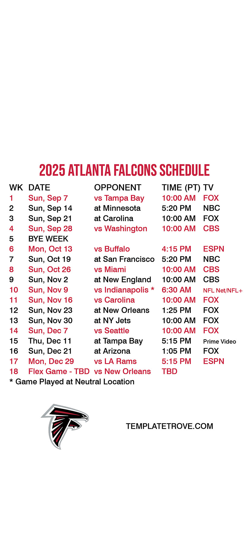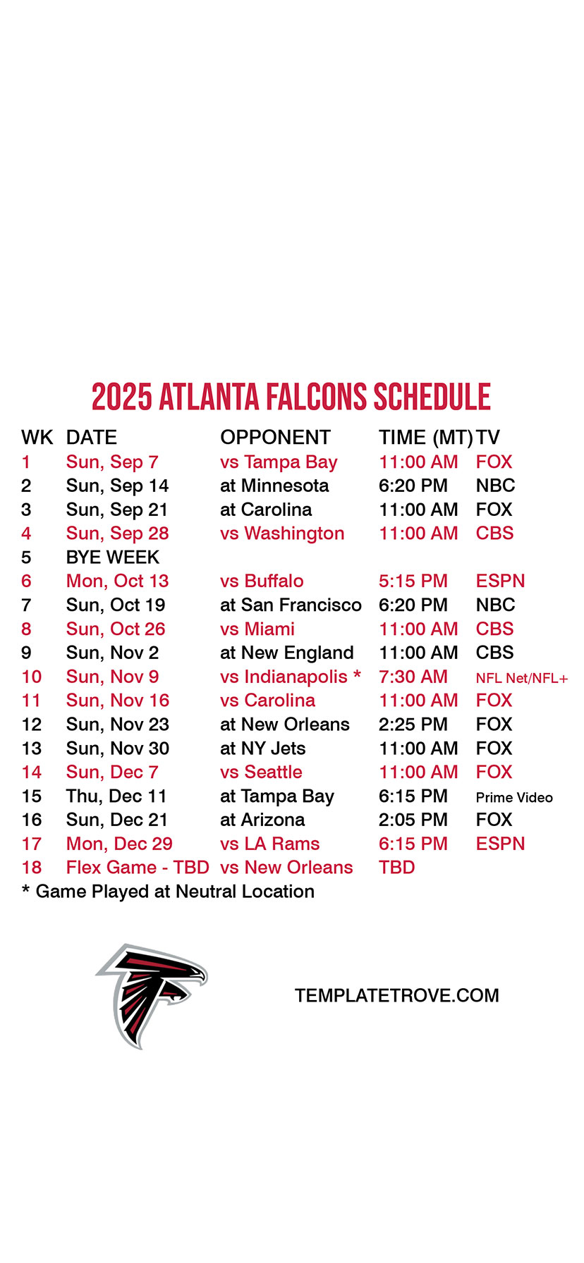 Atlanta Falcons Lock Screen Schedule for iPhone 6, 7, 8 Plus