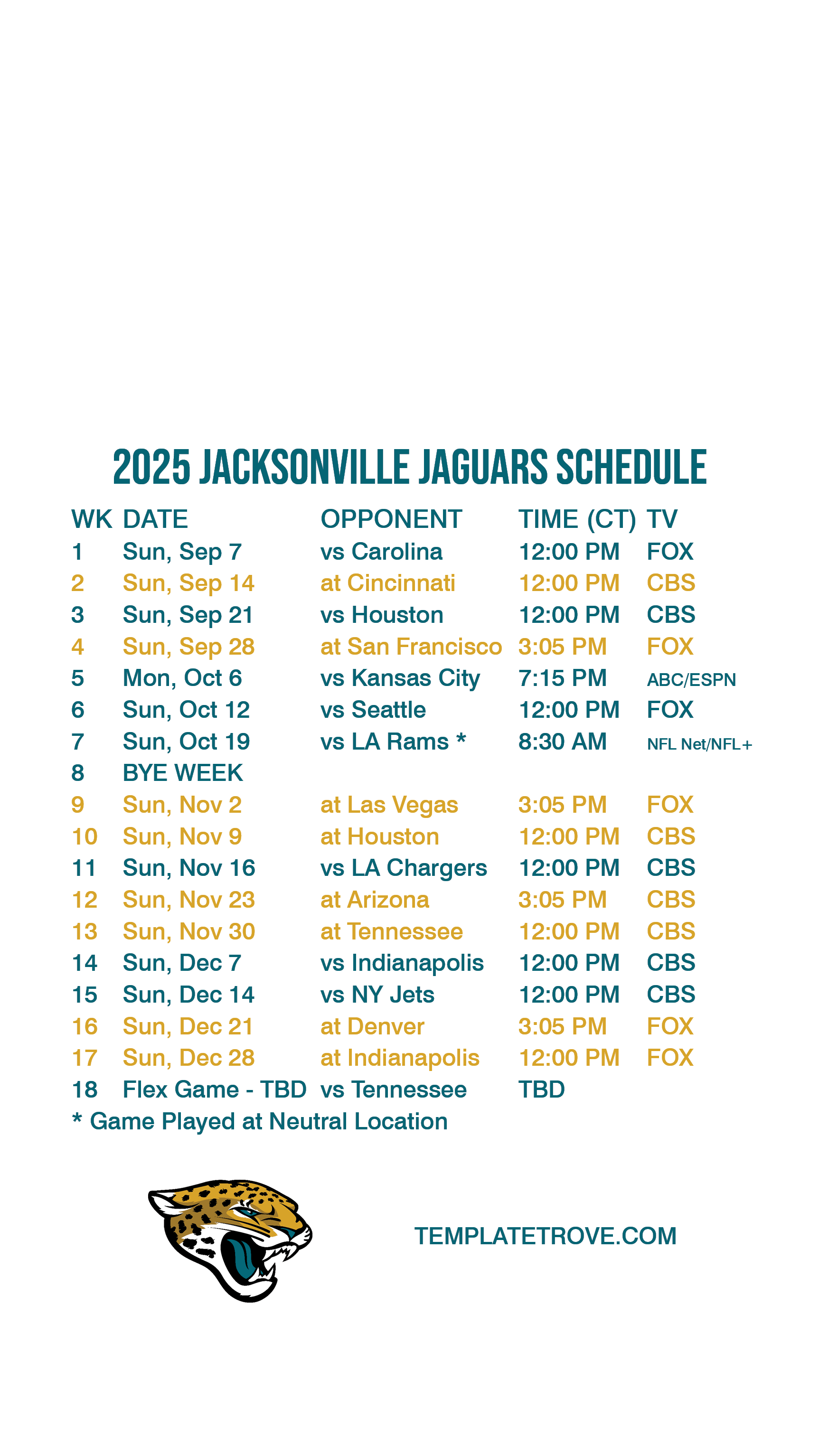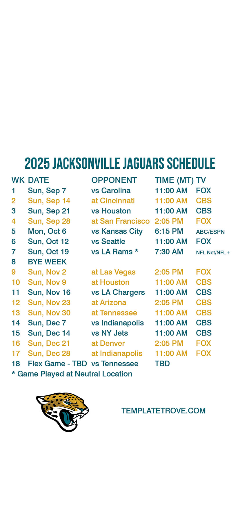 Jacksonville Jaguars Lock Screen Schedule for iPhone 6, 7, 8