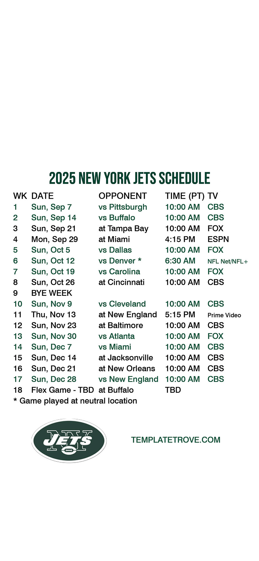 New York Jets Lock Screen Schedule for iPhone XR, 11 and 11