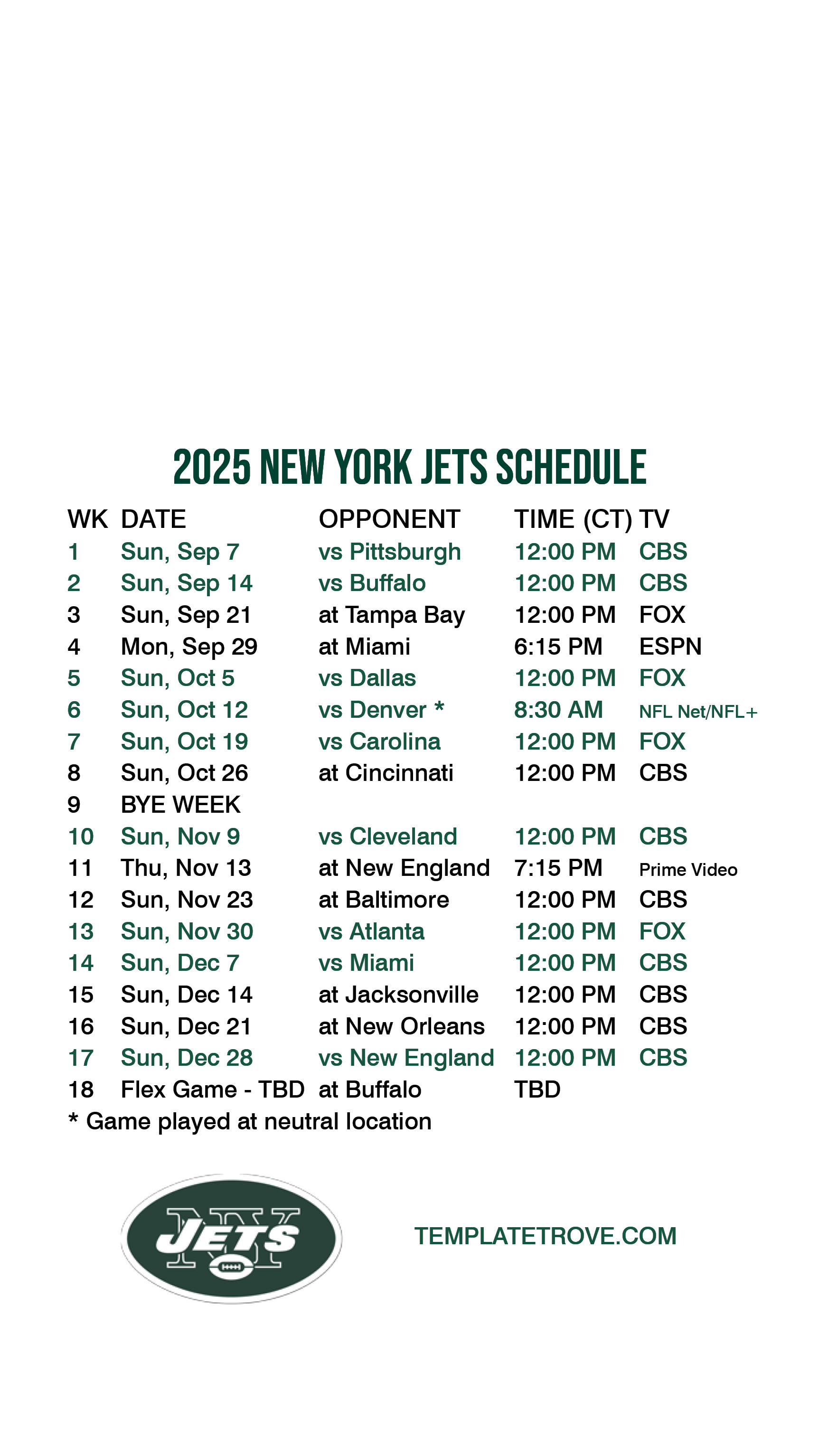 New York Jets Lock Screen Schedule for iPhone 6, 7, 8 Plus