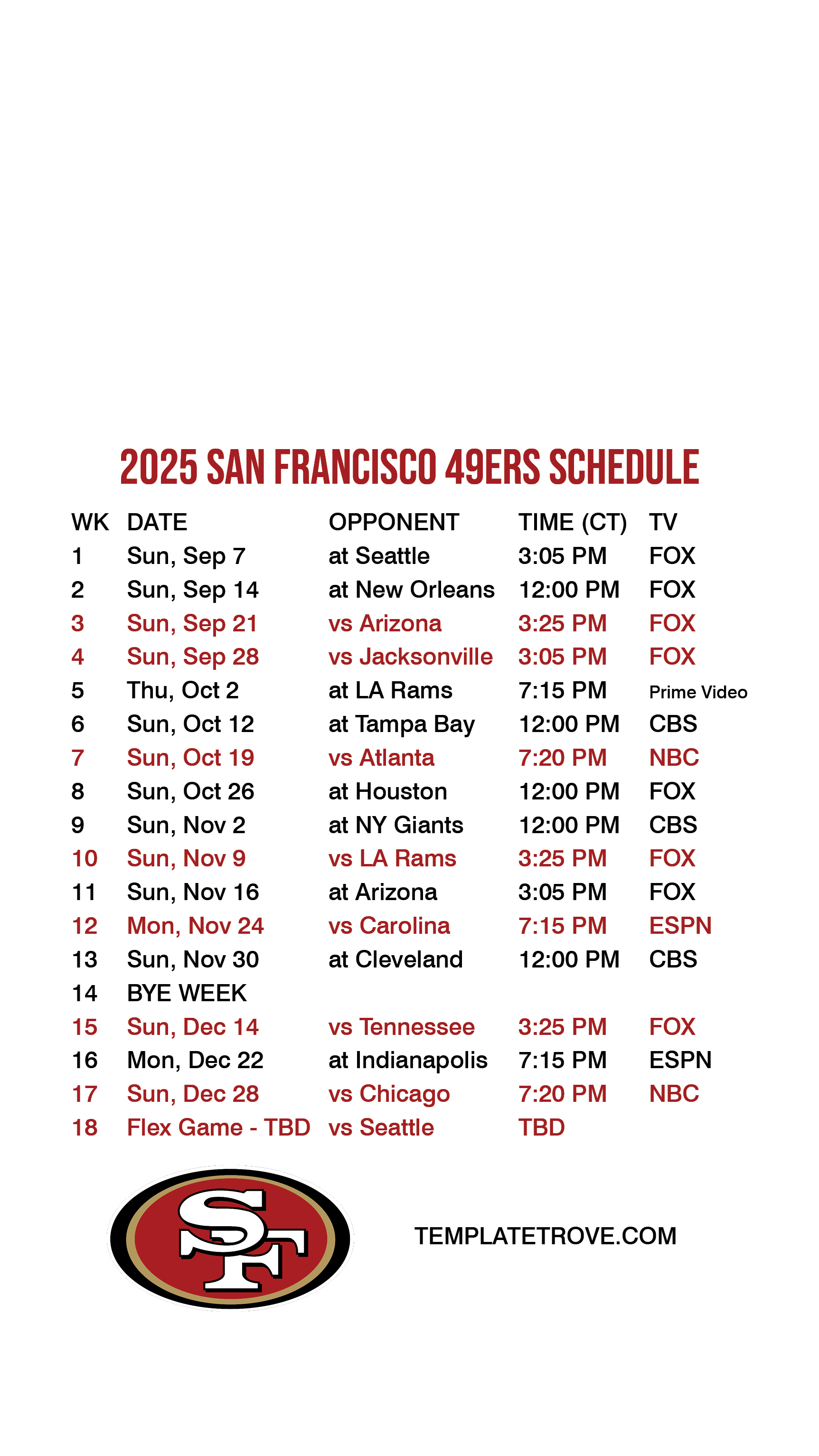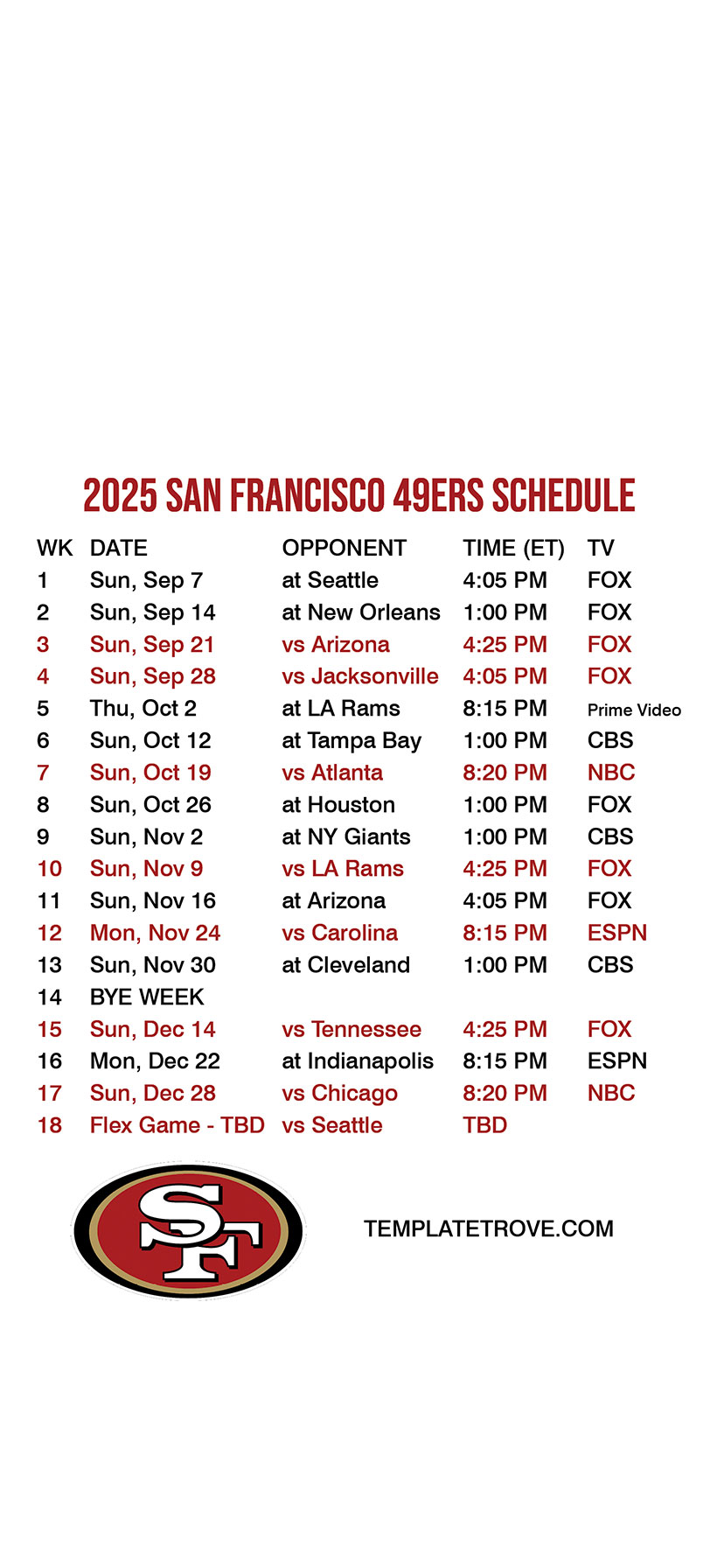 season games, TV listings for games and team logo. Also available