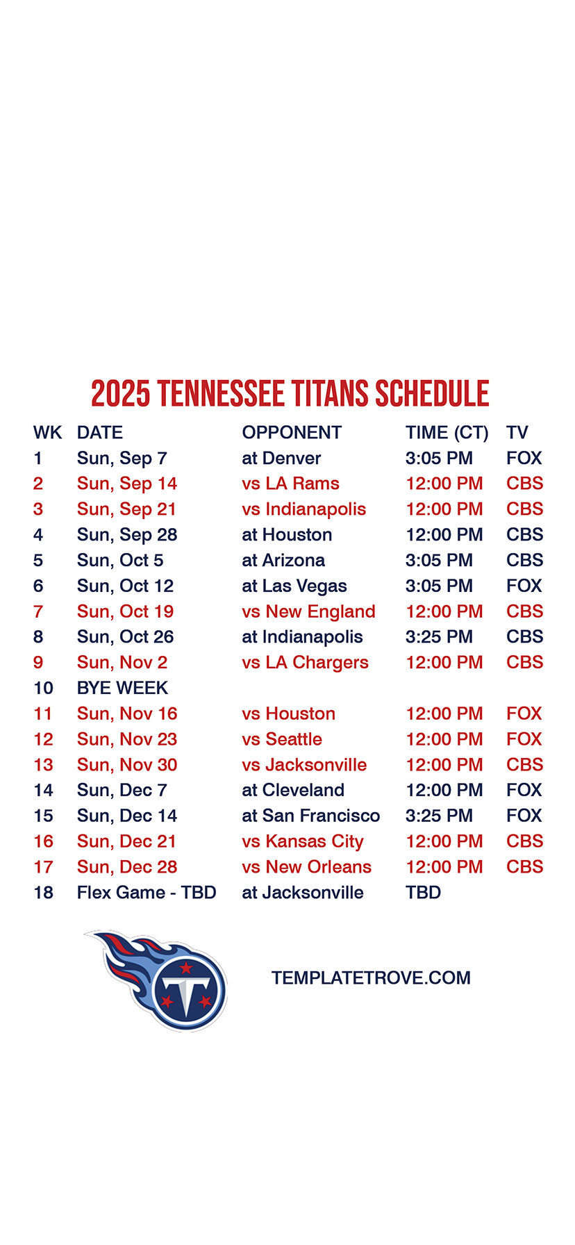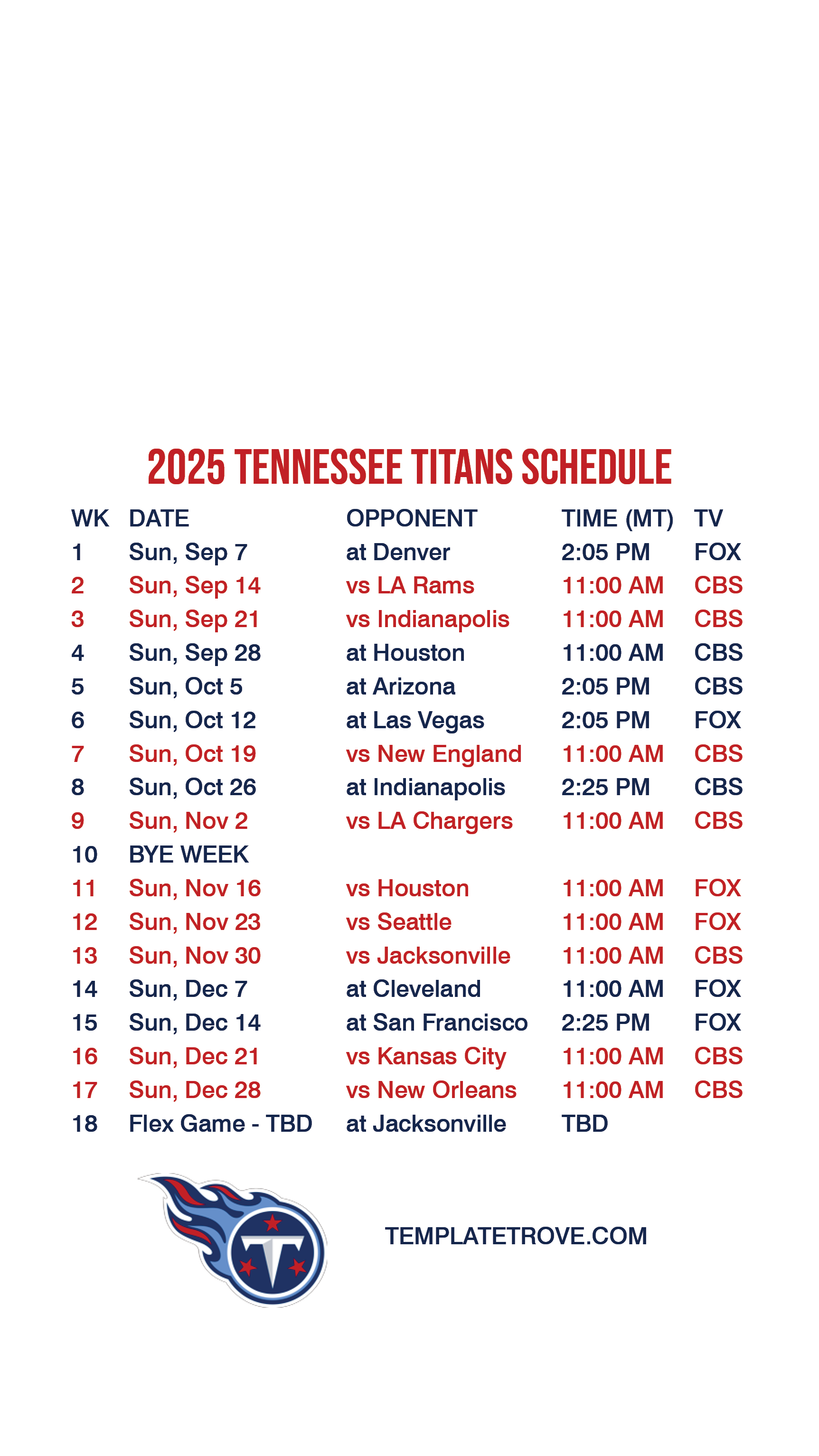 Tennessee Titans Lock Screen Schedule for iPhone 6, 7, 8