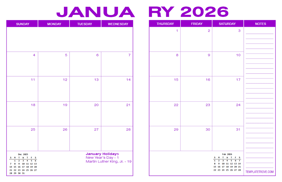 Perfect for 3-hole punching and placing into a 3 ring binder. This printable calendar is available for download in PDF format only.