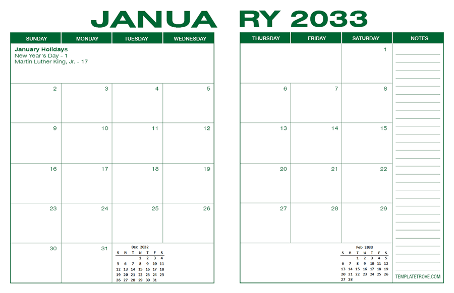 2033 Desk Calendar