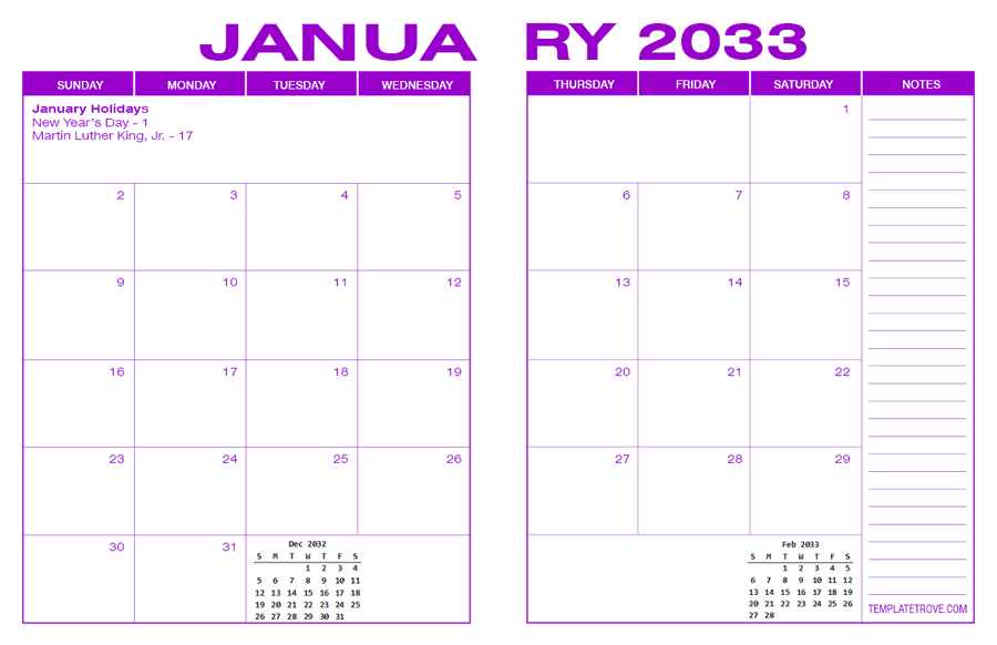 2033 Desk Calendar - Purple