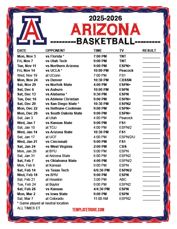 Keep up with the Arizona Wildcats basketball in the 2025-26 season with our