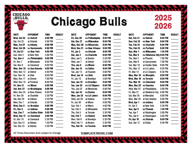 Keep up with the Chicago Bulls in the 2025-26 season with our