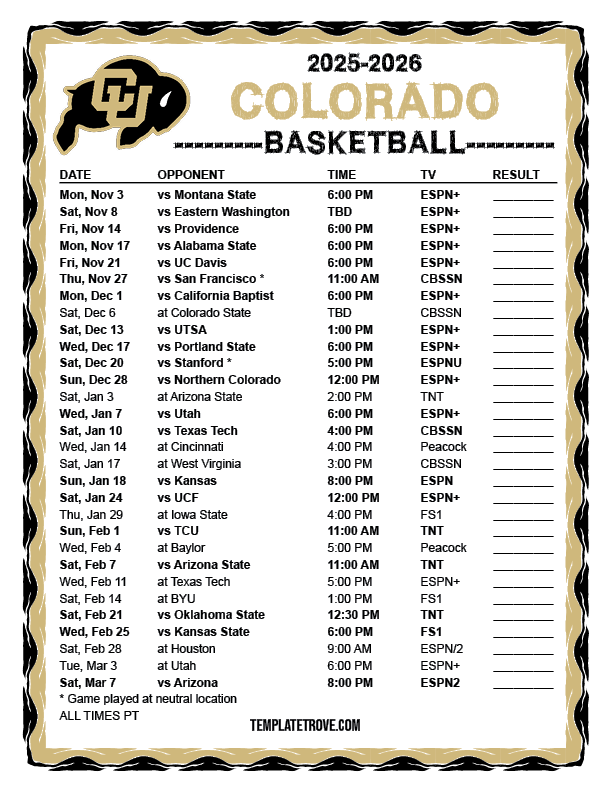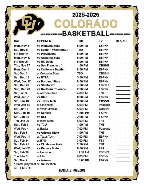 Keep up with the Colorado Buffaloes basketball in the 2025-26 season with our