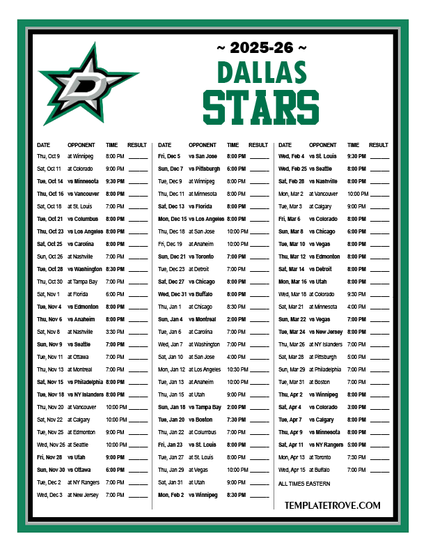 Keep up with the Dallas Stars in the 2025-26 season with our