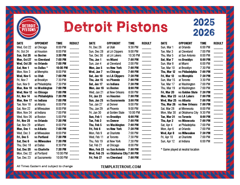 Keep up with the Detroit Pistons in the 2025-26 season with our