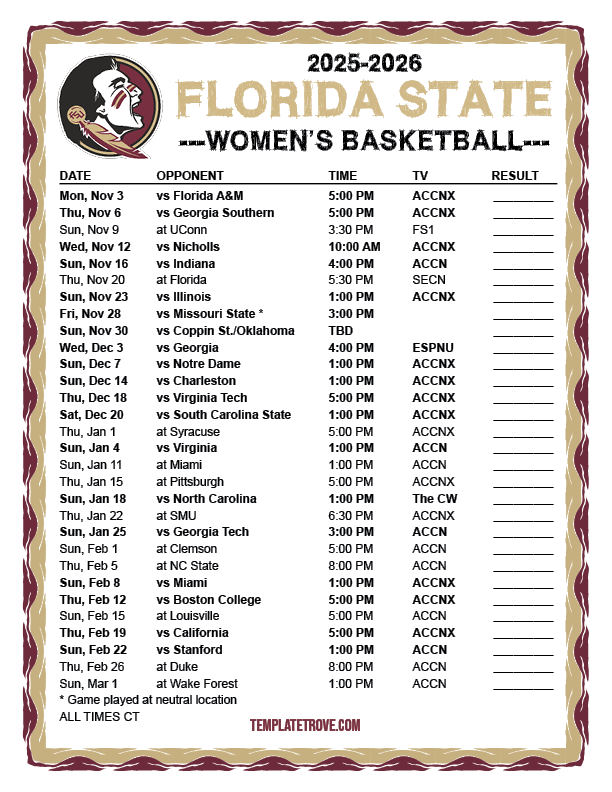 Keep up with Florida State Seminoles women's basketball in the 2025-26 season with our
