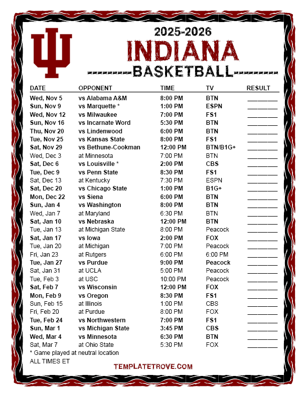 Keep up with the Indiana Hoosiers basketball in the 2025-26 season with our