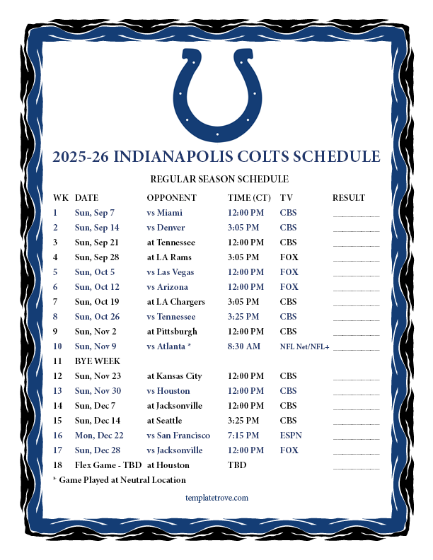 If you get a chance, please share the schedules through social media with your fellow Colts Fans. It's easy, and it would help us out a bunch, just click one of the social share buttons at the right of the screen on desktop or the black share button at the bottom right on mobile phones.