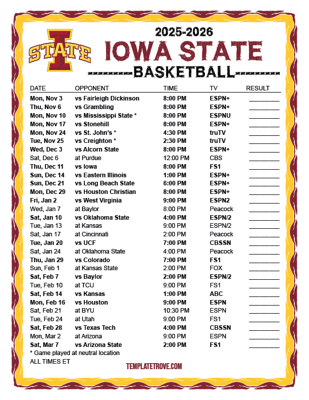Keep up with the Iowa State Cyclones basketball in the 2025-26 season with our