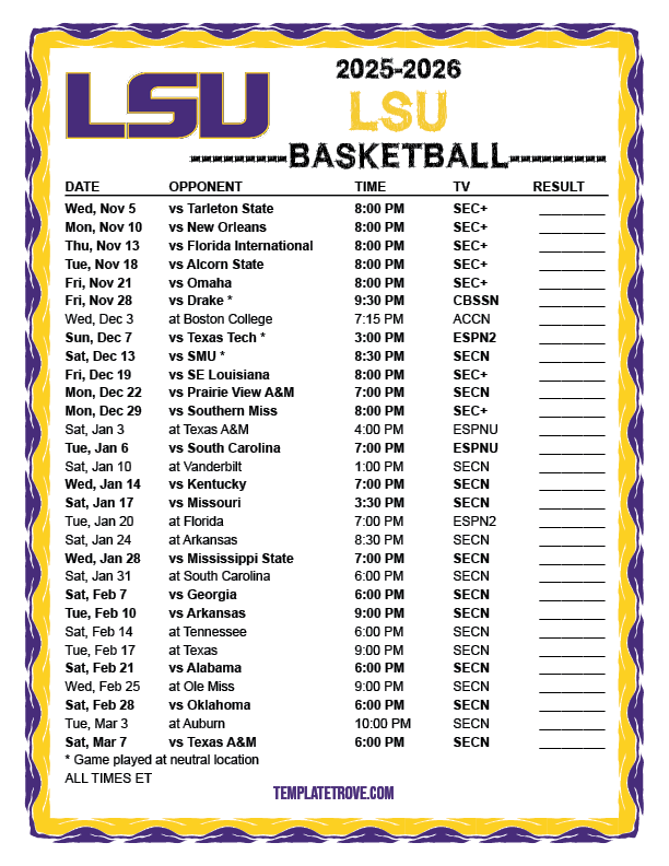 Keep up with the LSU Tigers basketball in the 2025-26 season with our