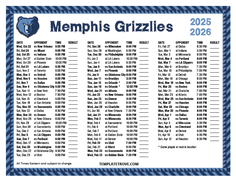 Keep up with the Memphis Grizzlies in the 2025-26 season with our