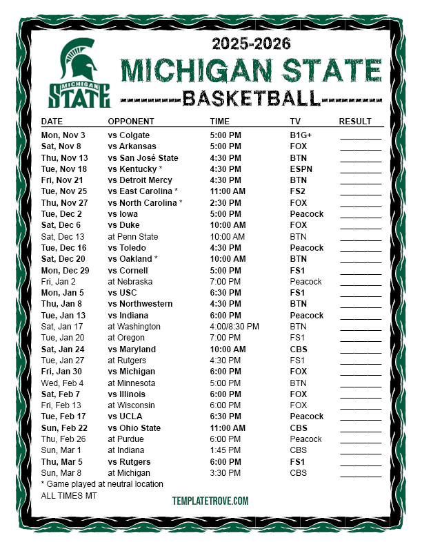 Keep up with the Michigan State Spartans basketball in the 2025-26 season with our
