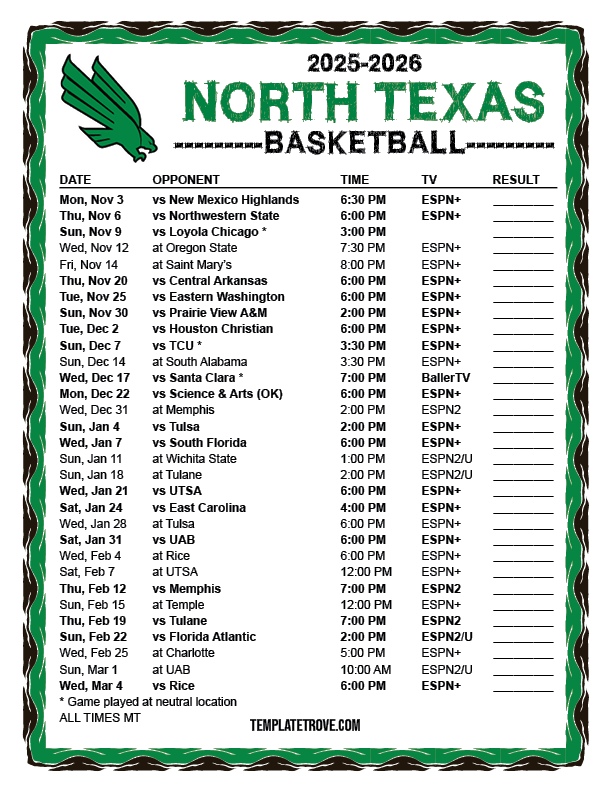 Keep up with the North Texas Mean Green basketball in the 2025-26 season with our
