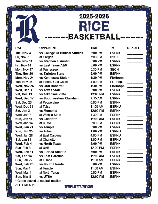 Keep up with the Rice Owls basketball in the 2025-26 season with our
