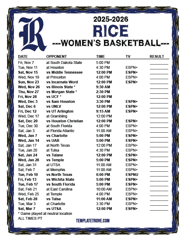 Keep up with Rice Owls women's basketball in the 2025-26 season with our