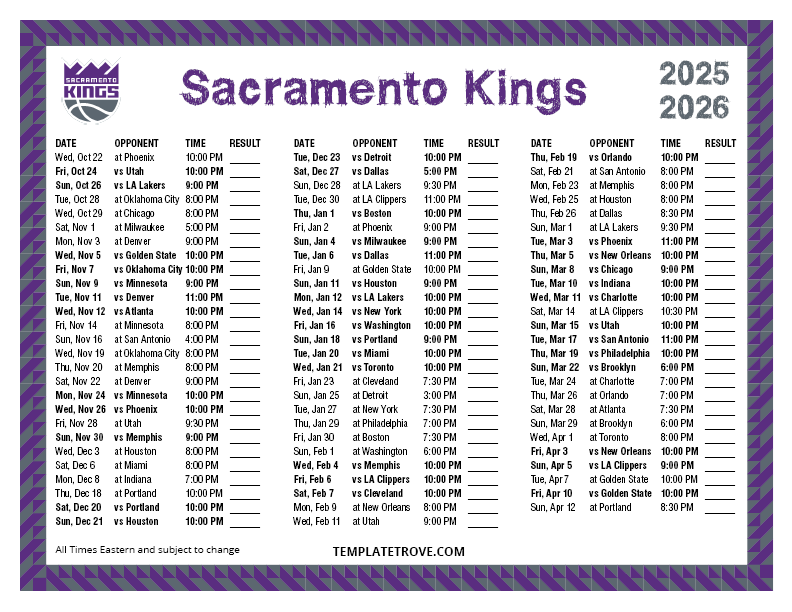 Keep up with the Sacramento Kings in the 2025-26 season with our