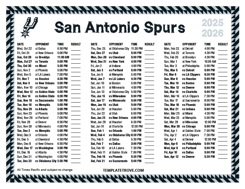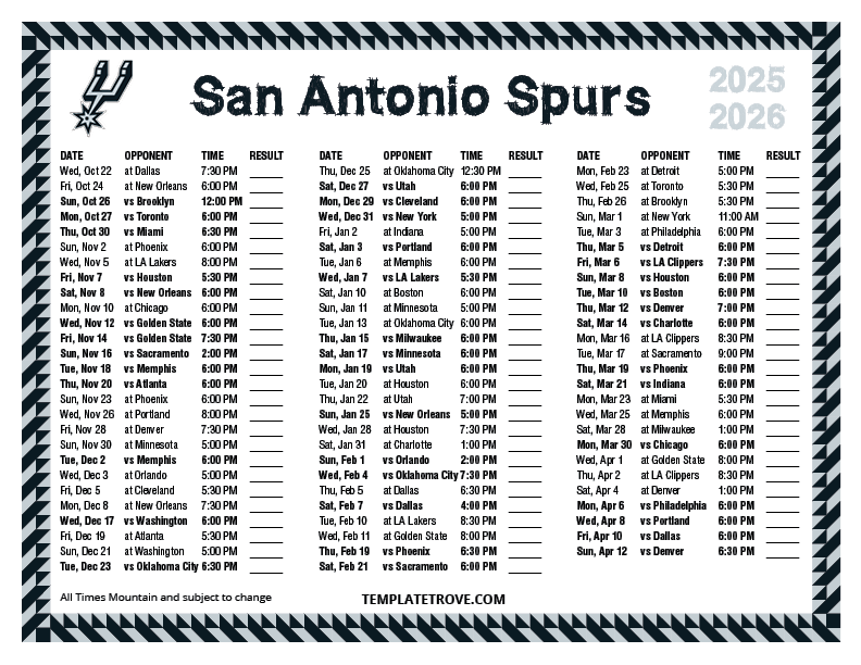 Keep up with the San Antonio Spurs in the 2025-26 season with our