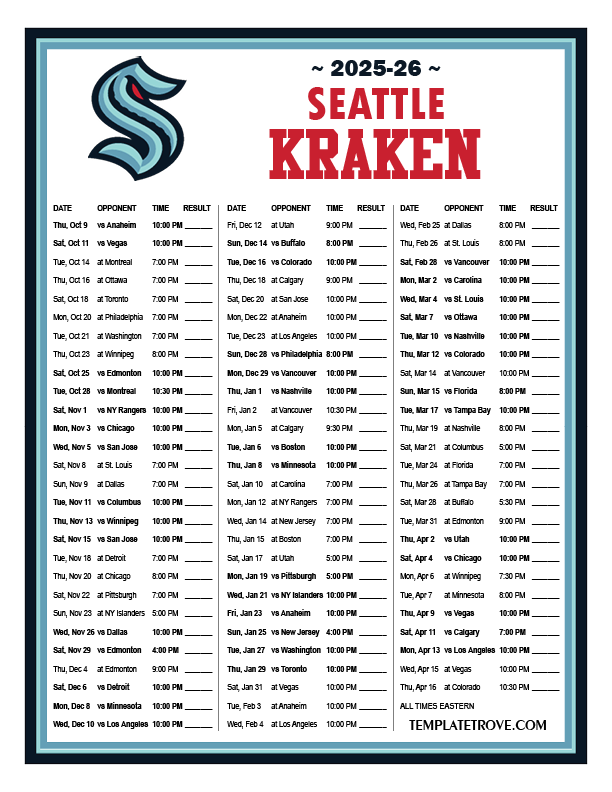 Keep up with the Seattle Kraken in the 2025-26 season with our