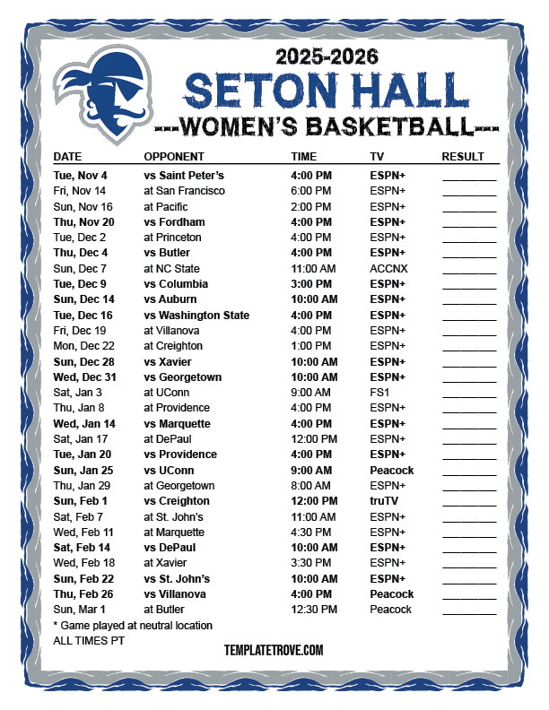 Keep up with Seton Hall Pirates Women's Basketball in the 2025-26 season with our