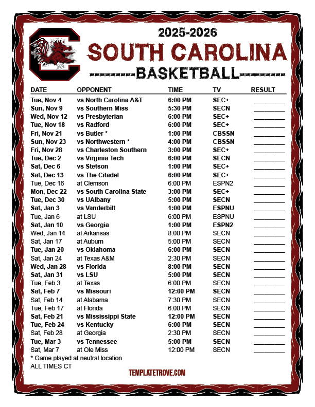 If you get a chance, please share the schedules through social media with your fellow Gamecock Fans. It's easy, and it would help us out a bunch, just click one of the social share buttons at the right of the screen on desktop or the black share button at the bottom right on mobile phones.