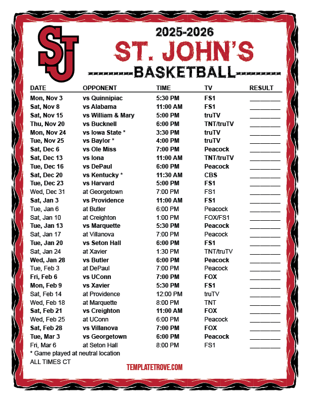 Keep up with the St. John's Red Storm basketball in the 2025-26 season with our