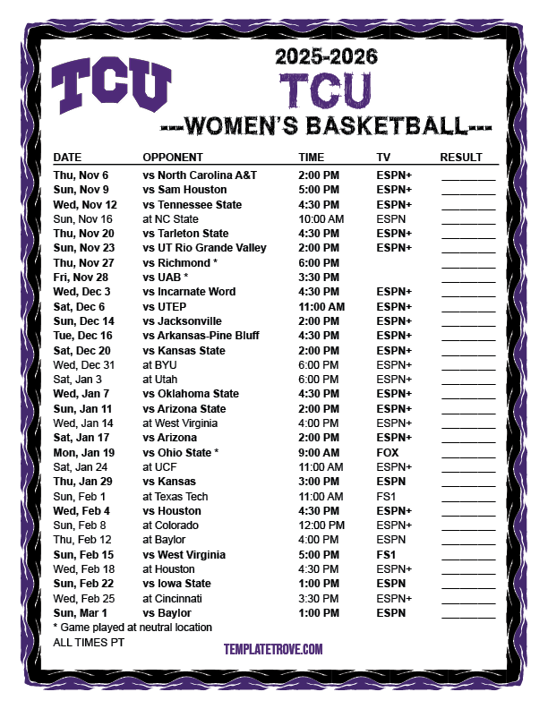 Keep up with TCU Horned Frogs Women's Basketball in the 2025-26 season with our