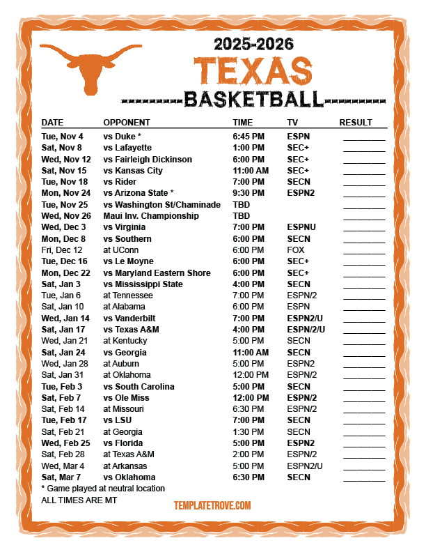 Keep up with the Texas Longhorns basketball in the 2025-26 season with our