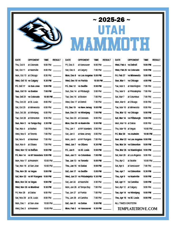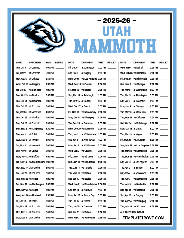 Keep up with the Utah Mammoth in the 2025-26 season with our