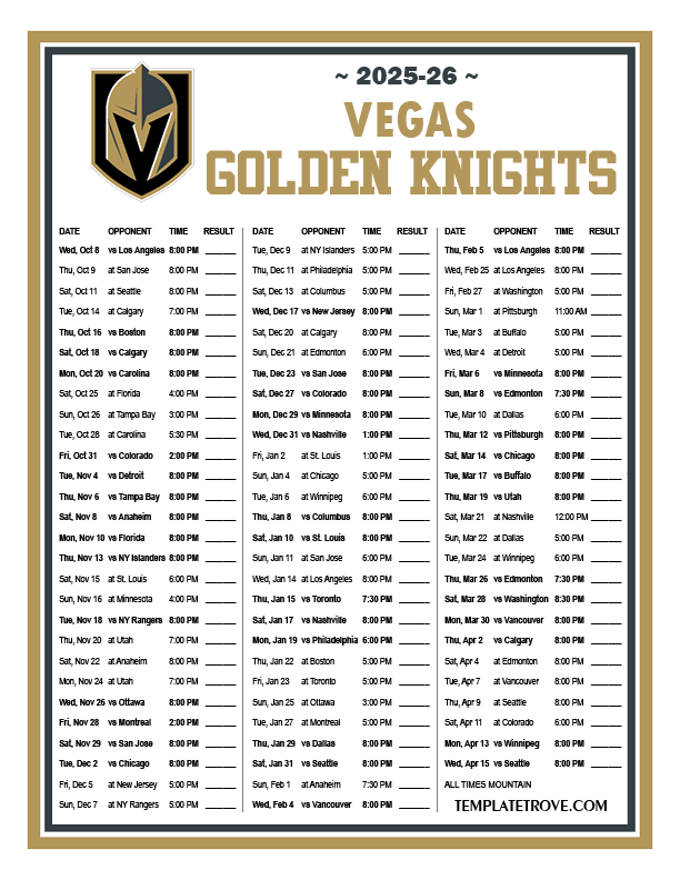 Keep up with the Vegas Golden Knights in the 2025-26 season with our