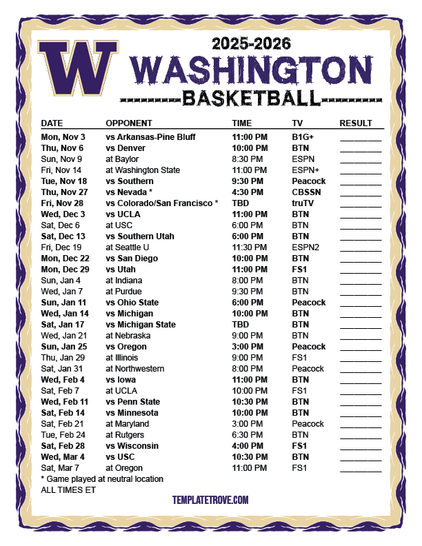Keep up with the Washington Huskies basketball in the 2025-26 season with our