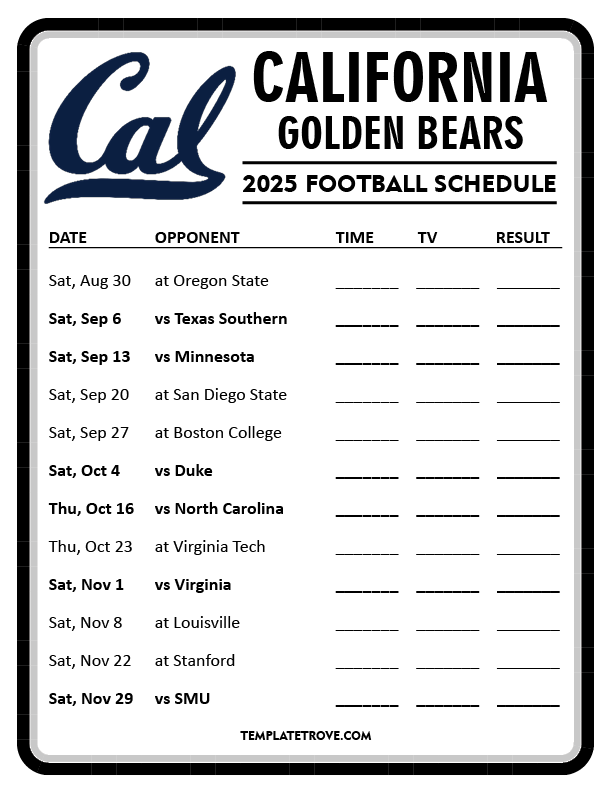 If you get a chance, please share the schedules through social media with your fellow Golden Bear Fans. It's easy, and it would help us out a bunch, just click one of the social share buttons at the right of the screen on desktop or the black share button at the bottom right on mobile phones.