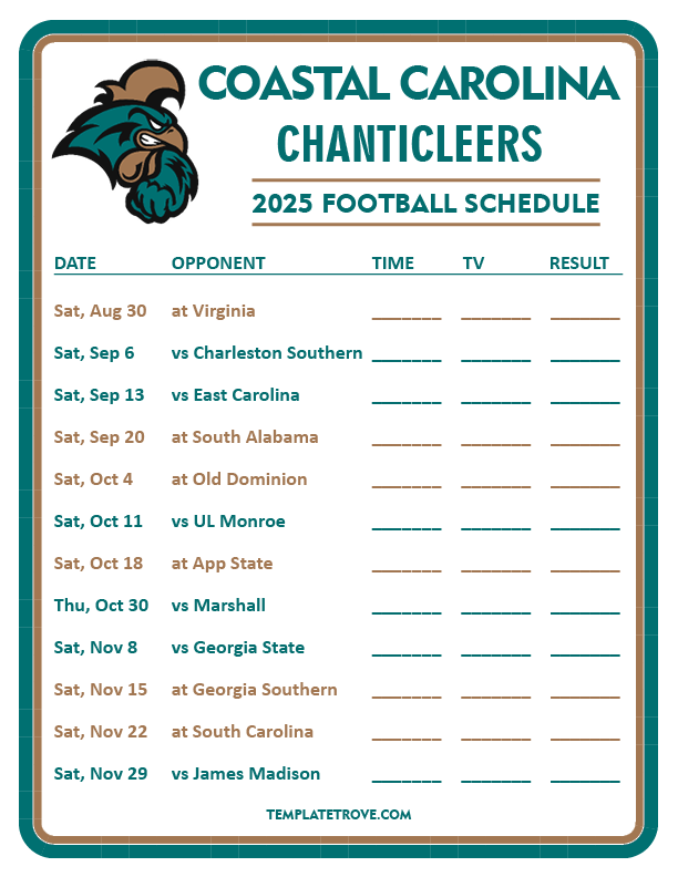 Keep up with Coastal Carolina Chanticleers Football in the 2025