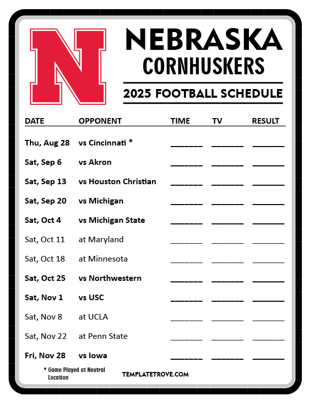 If you get a chance, please share the schedules through social media with your fellow Cornhusker Fans. It's easy, and it would help us out a bunch, just click one of the social share buttons at the right of the screen on desktop or the black share button at the bottom right on mobile phones.