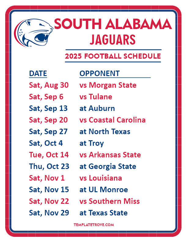 If you get a chance, please share the schedules through social media with your fellow South Alabama Fans. It's easy, and it would help us out a bunch, just click one of the social share buttons at the right of the screen on desktop or the black share button at the bottom right on mobile phones.