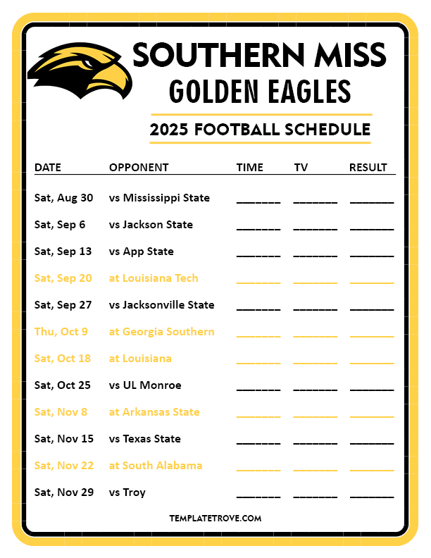 Keep up with Southern Miss Golden Eagles Football in the 2025