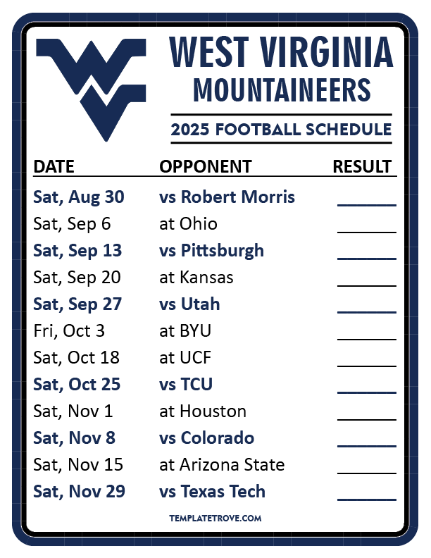 If you get a chance, please share the schedules through social media with your fellow Mountaineer Fans. It's easy, and it would help us out a bunch, just click one of the social share buttons at the right of the screen on desktop or the black share button at the bottom right on mobile phones.