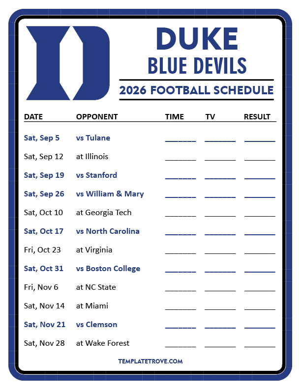 Keep up with Duke Blue Devils Football in the 2026