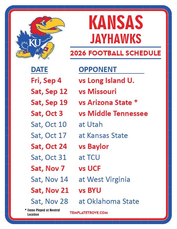 If you get a chance, please share the schedules through social media with your fellow Jayhawk Fans. It's easy, and it would help us out a bunch, just click one of the social share buttons at the right of the screen on desktop or the black share button at the bottom right on mobile phones.