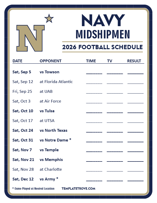 Keep up with Navy Midshipmen Football in the 2026