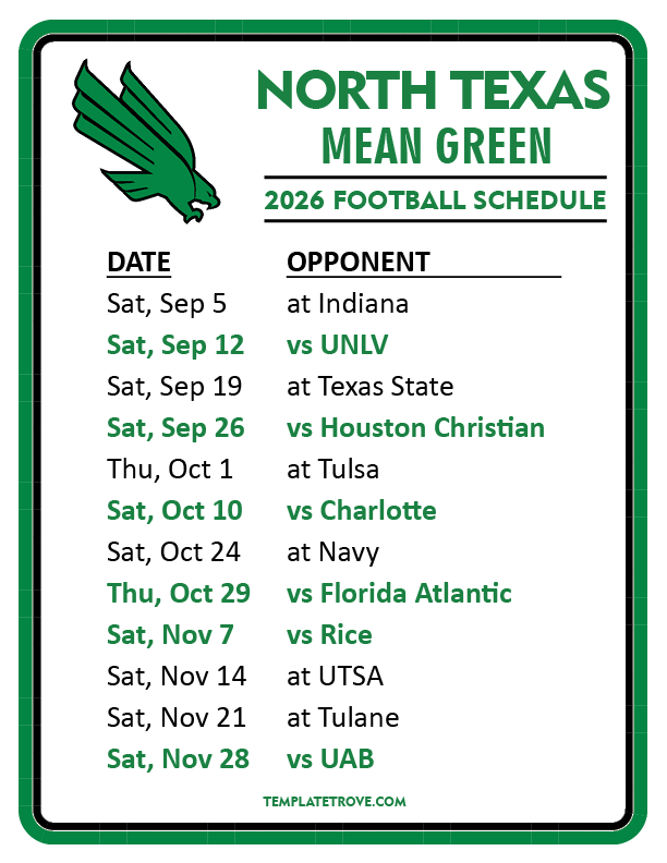 If you get a chance, please share the schedules through social media with your fellow Mean Green Fans. It's easy, and it would help us out a bunch, just click one of the social share buttons at the right of the screen on desktop or the black share button at the bottom right on mobile phones.