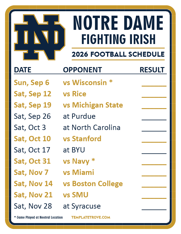 Keep up with Notre Dame Fighting Irish Football in the 2026