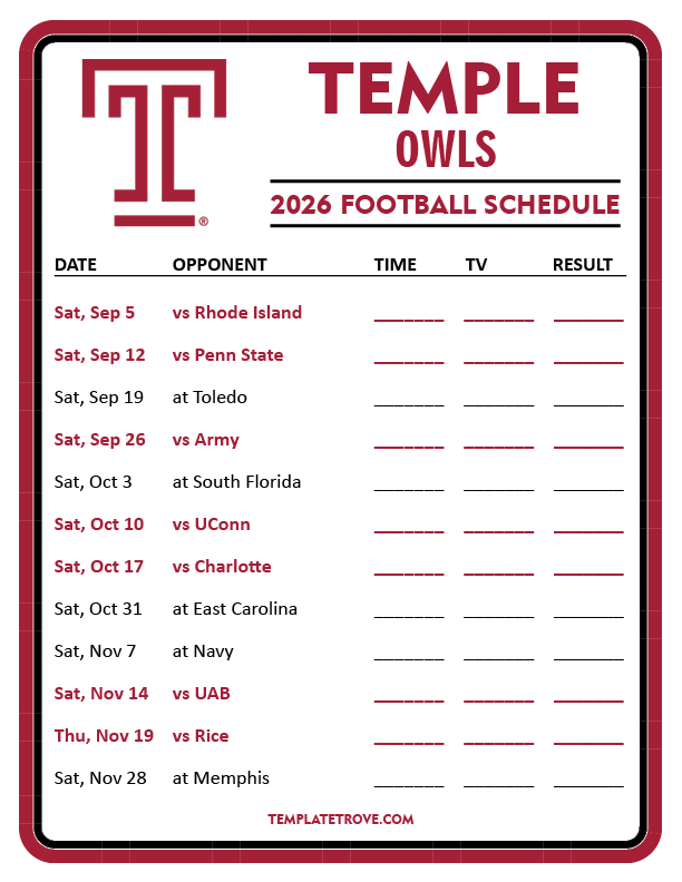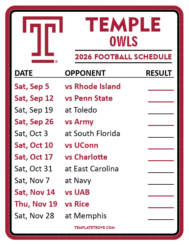 Keep up with Temple Owls Football in the 2026