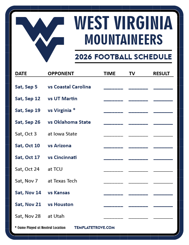 Keep up with West Virginia Mountaineers Football in the 2026