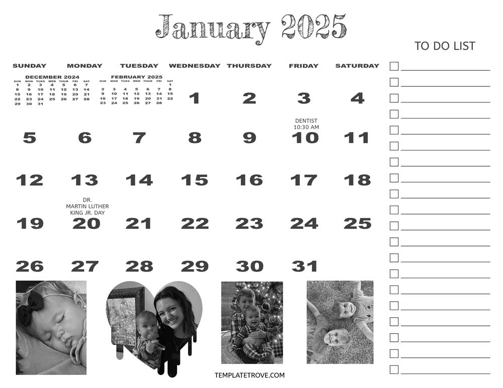 Start by choosing your preferred layout and color scheme, then easily upload your own photos, add custom text for birthdays or events, and even highlight important dates with personalized messages.