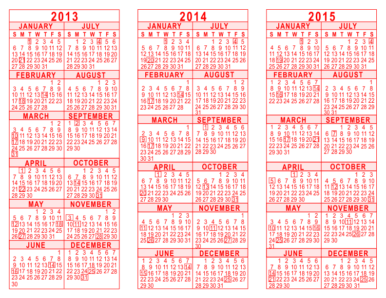 Blue 3 Year Calendar - 2013 - 2014 - 2015
